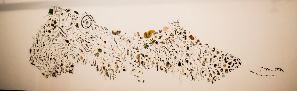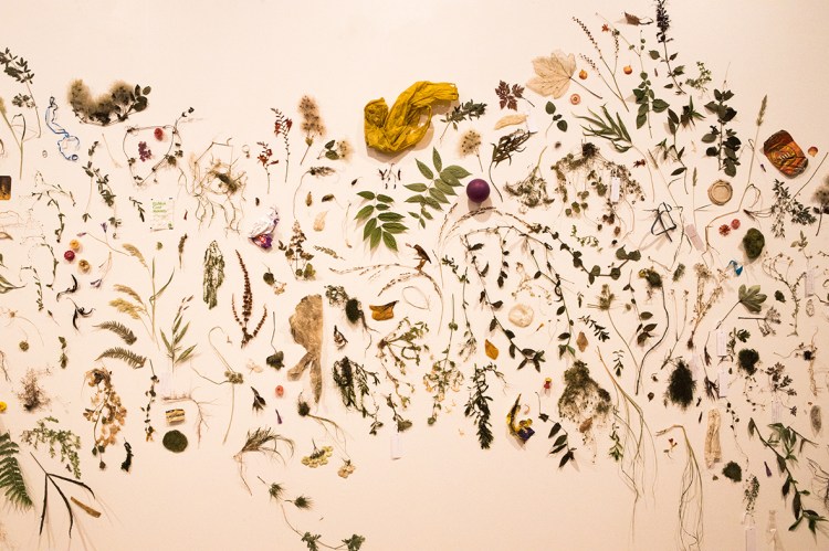 The exploded herbarium display plants and found objects alike that frame and inhabit these streams, producing a pseudo-scientific tool that at once blur and sharpen our focus on our environment, our waterways, and our consumer culture.