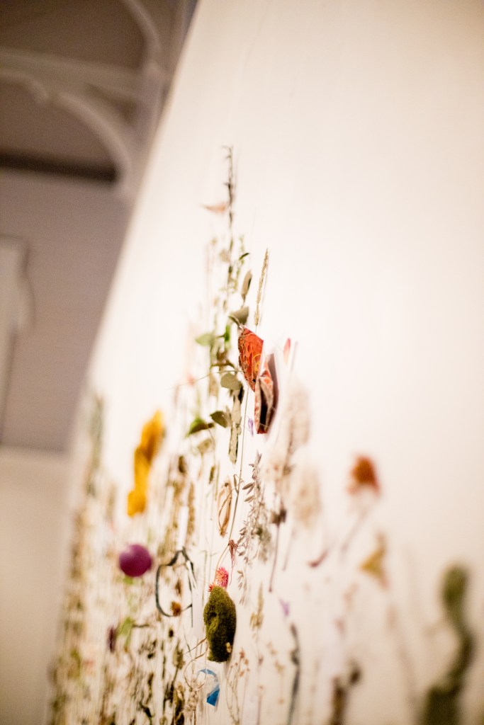 The beauty, variety of plant specimens, and the overwhelming majority of the exotics and weeds invite the viewer to scrutinise and consider the environmental history of the waterways, while the introduction of the the shiny and colourful chocolate and ice cream wrappers, dirty single use plastics, and other man made objects and waste, provide a sobering insight into what goes into our streams today.